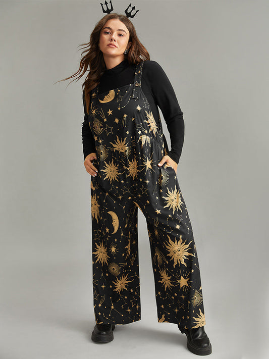 Halloween Moon & Star Print Overall Cami Jumpsuit