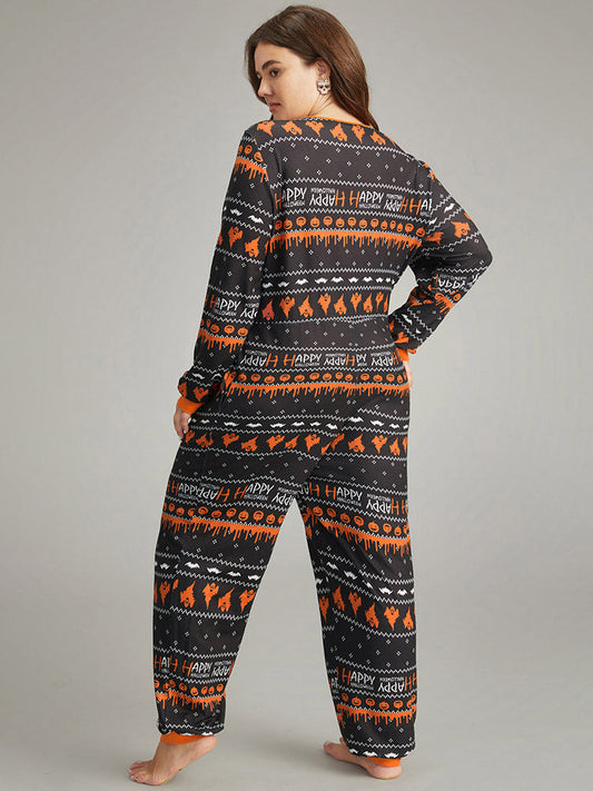 Halloween Print Contrast Button Up Sleep Jumpsuit