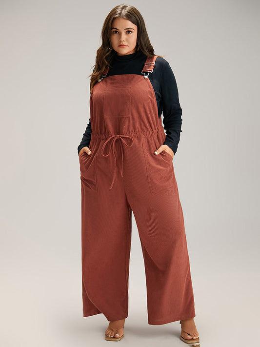 Plain Textured Drawstring Adjustable Straps Jumpsuit