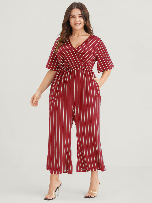 Asymmetrical Striped Pocket Button Wrap Jumpsuit