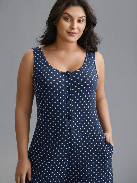 U Neck Polka Dot Button Up Sleep Jumpsuit