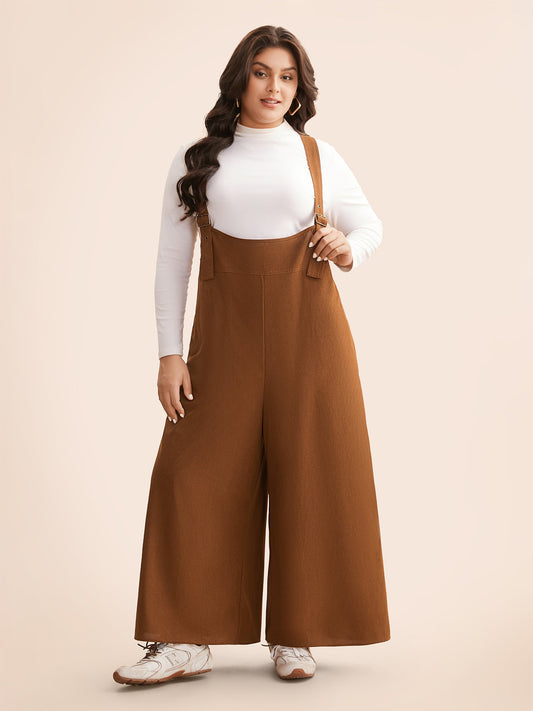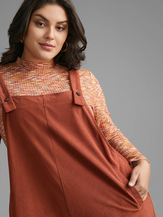 Corduroy Button Detail Adjustable Straps Jumpsuit