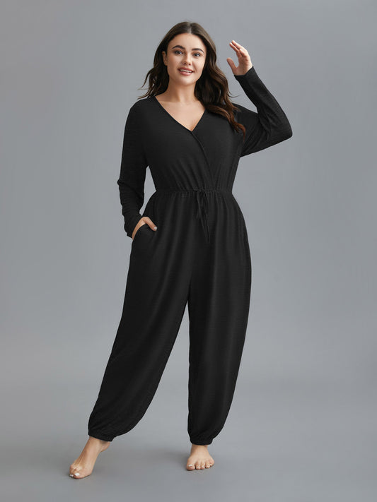 Elastic Waist Overlap Collar Lounge Jumpsuit