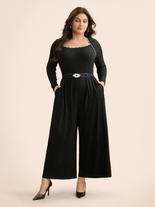 Texture Contrast Trim Scalloped Trim Jumpsuit