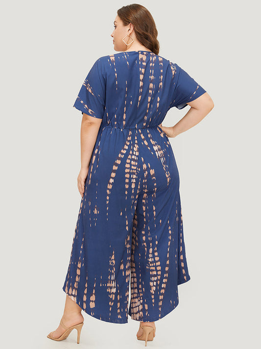 Tie Dye Zip Back Batwing Sleeve Pocket Jumpsuit