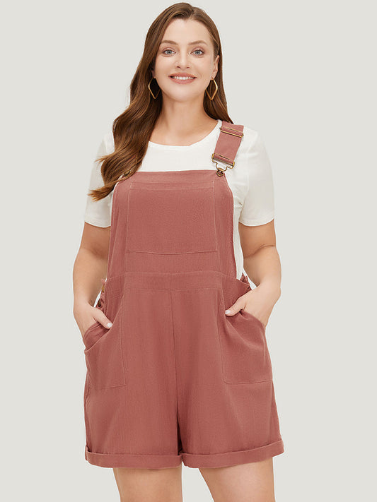 Plain Pocket Button Side Overall Jumpsuit