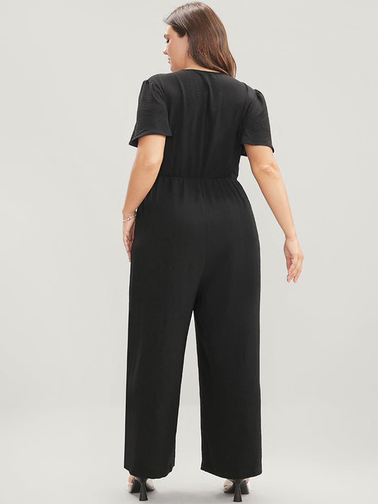 Solid Zip Up Pocket Ruffle Sleeve Jumpsuit