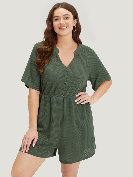 Plain Waffle Knit Pocket Button Detail Notched Jumpsuit