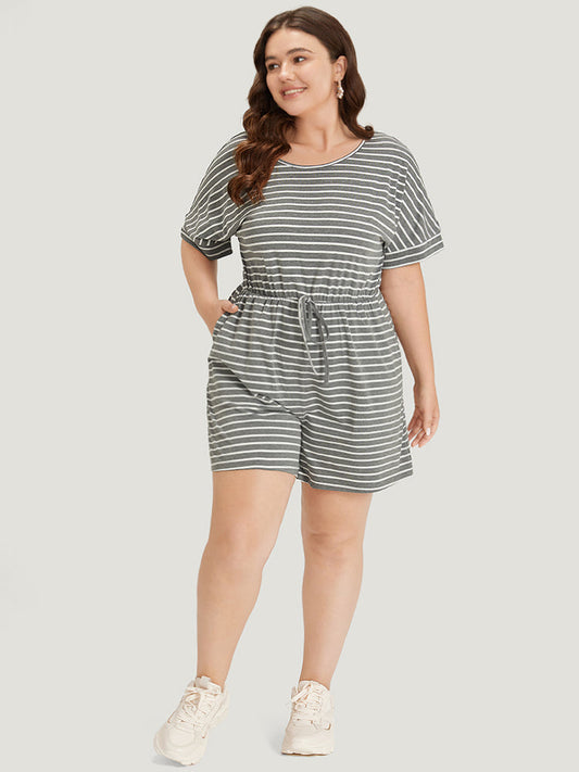 Striped Print Pocket Ties Elastic Waist Jumpsuit