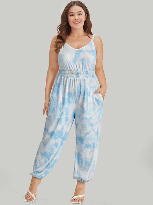 Tie Dye Pocket Shirred Cami Jumpsuit