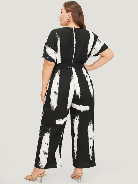 Bandana Print Embroidered Surplice Neck Pocket Belted Jumpsuit