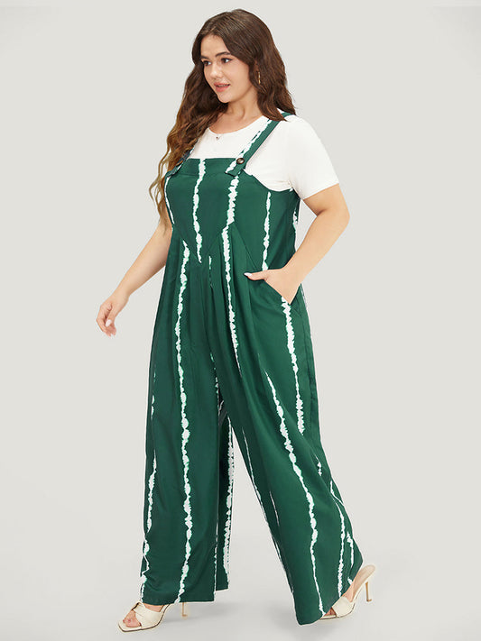 Tie Dye Pocket Pleated Detail Overall Jumpsuit