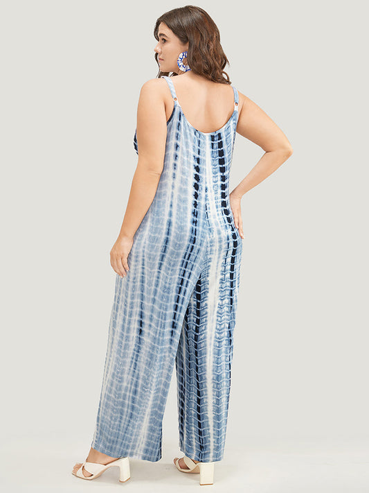 Tie Dye Adjustable Straps Pocket Cami Jumpsuit