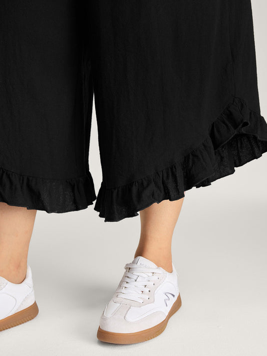 Pure Cotton Ruffled Hem Pockets Jumpsuit