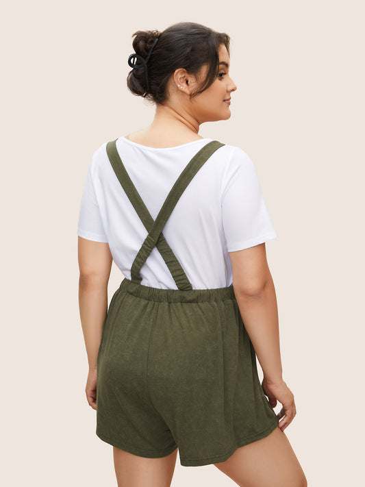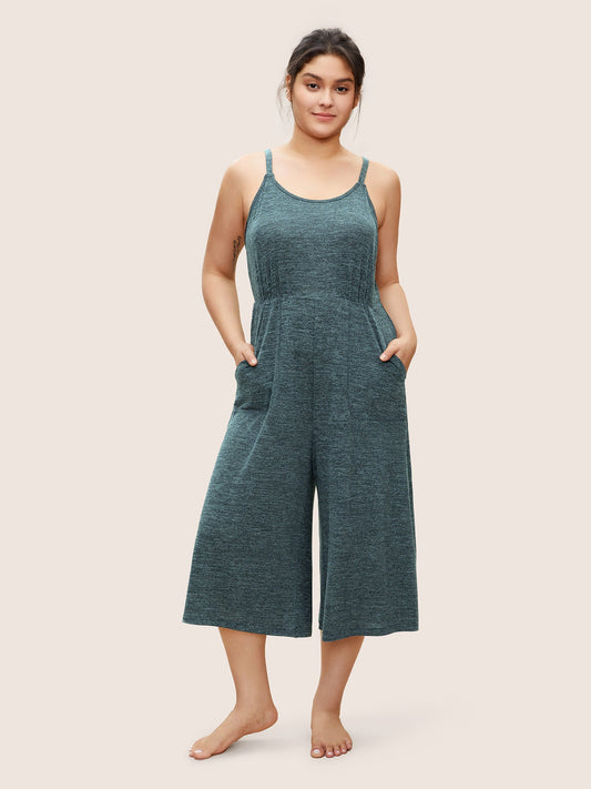 Solid Heather Adjustable Straps Pocket Sleep Jumpsuit