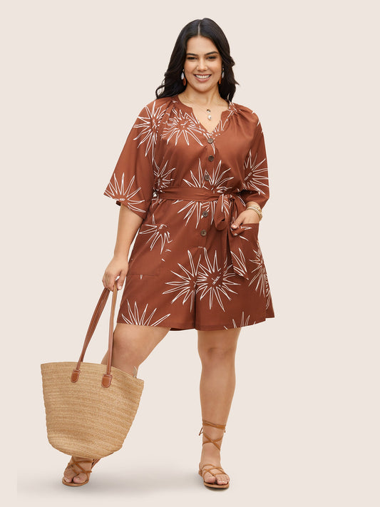 Sun Print Gathered Button Up Jumpsuit