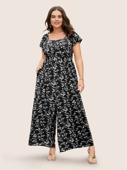 Crew Neck Ditsy Floral Tie Knot Jumpsuit