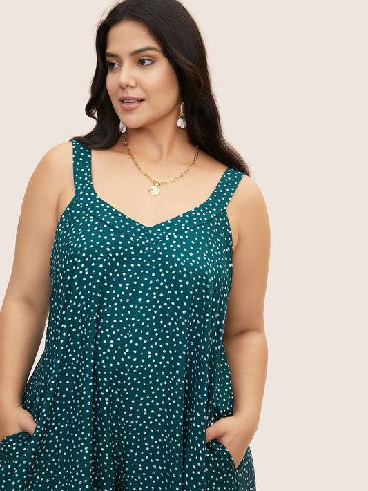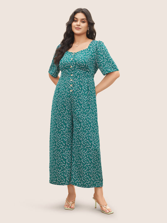 Ditsy Floral Button Detail Square Neck Jumpsuit