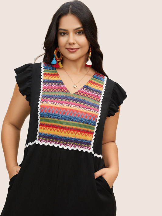 Contrast Webbing Ruffle Cap Sleeve Jumpsuit