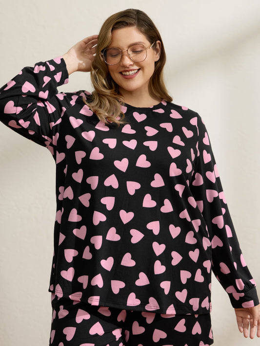 Sweet Hearts Stretchy Waist Knit Loungewear Set