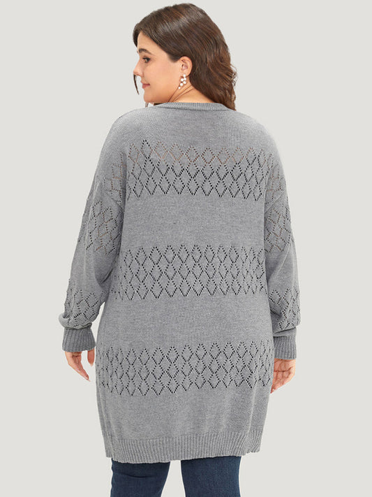 Geometric Eyelet Elastic Cuffs Tunic Cardigan