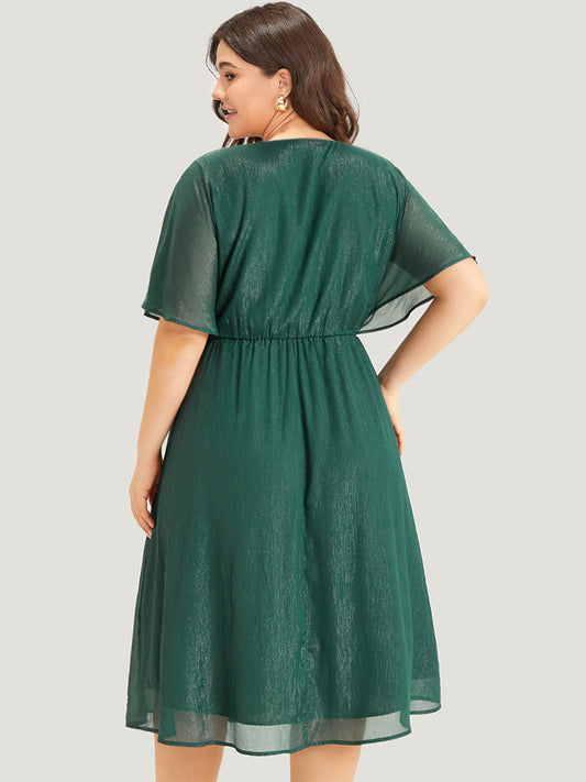 Sequin Surplice Neck Ruffle Trim Zipper Dress