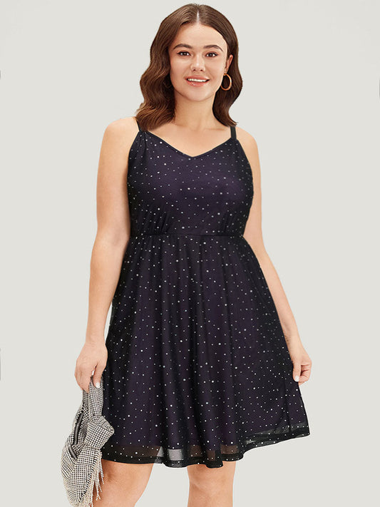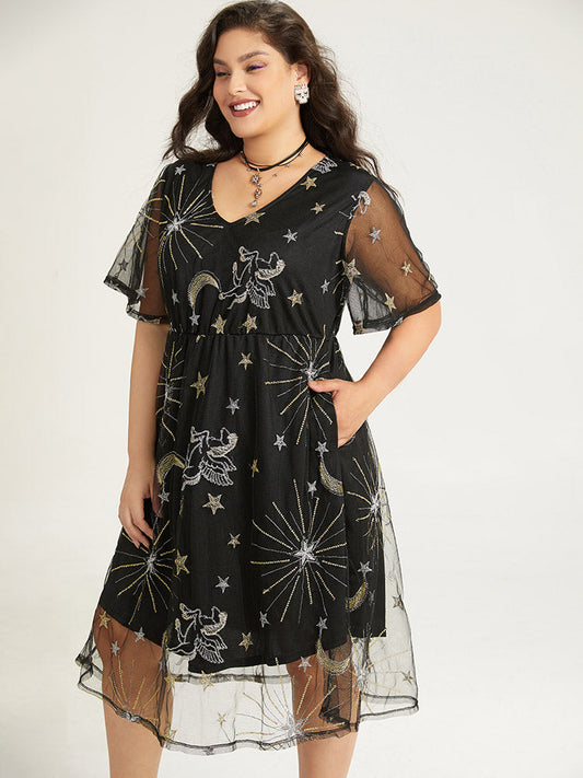Moon & Star Glitter Surplice Neck Bell Sleeve Dress