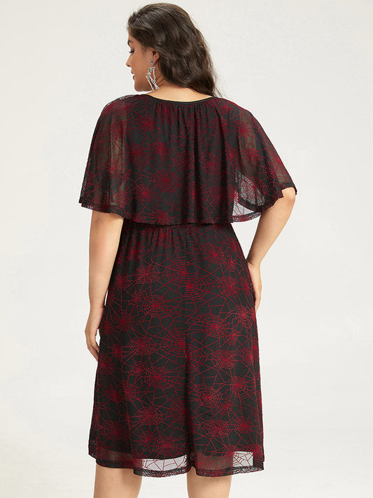 Halloween Moon & Star Print Pocket Mesh Patchwork Dress