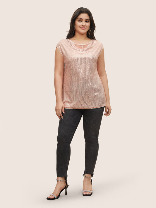 Solid Sequin Cowl Neck Sleeveless Blouse