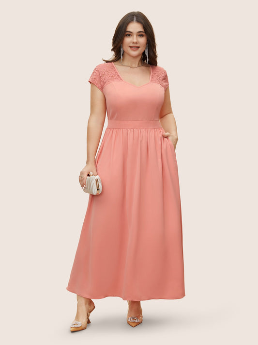 Lace Panel Shirred Gathered Pocket Dress