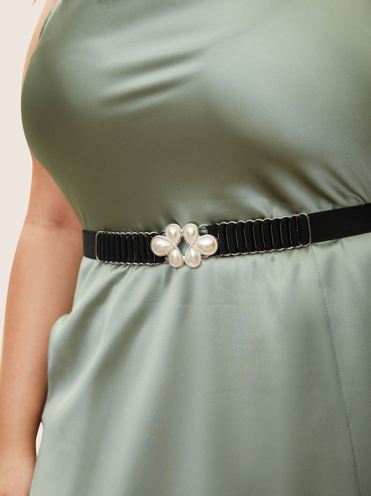 Pearl Beaded Elastic Waist Flower Detail Belt