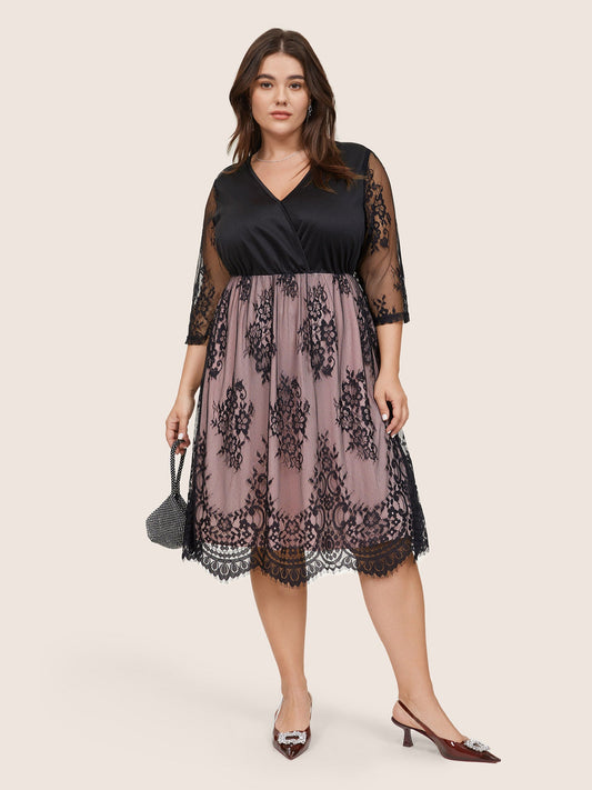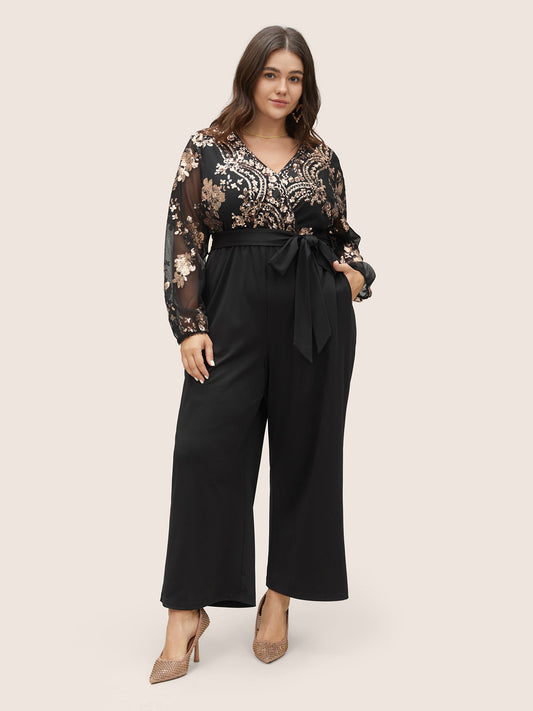Sequin Mesh Patchwork Wrap Belted Jumpsuit