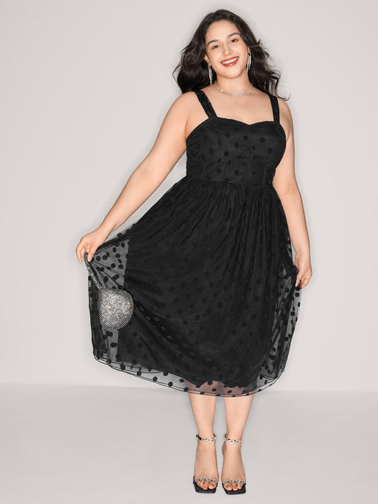 Polka Dots Structured Corset Detail Midi Dress