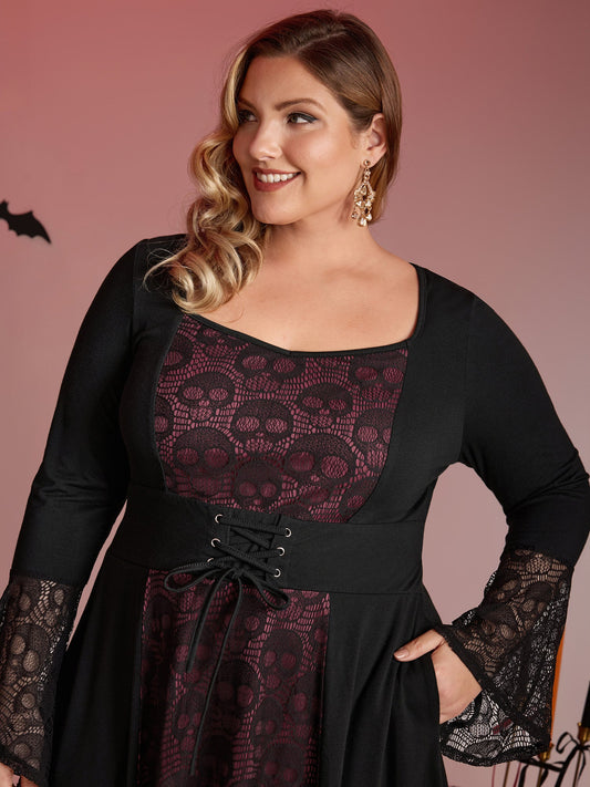 Skull Wide-Waist Tie Contrast Midi Dress