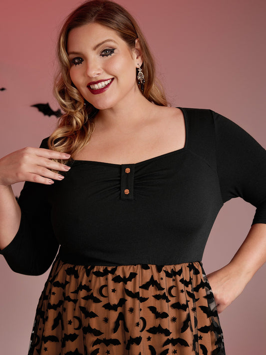 Bats Print Halloween Sheer Pockets Maxi Dress