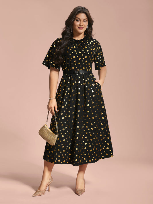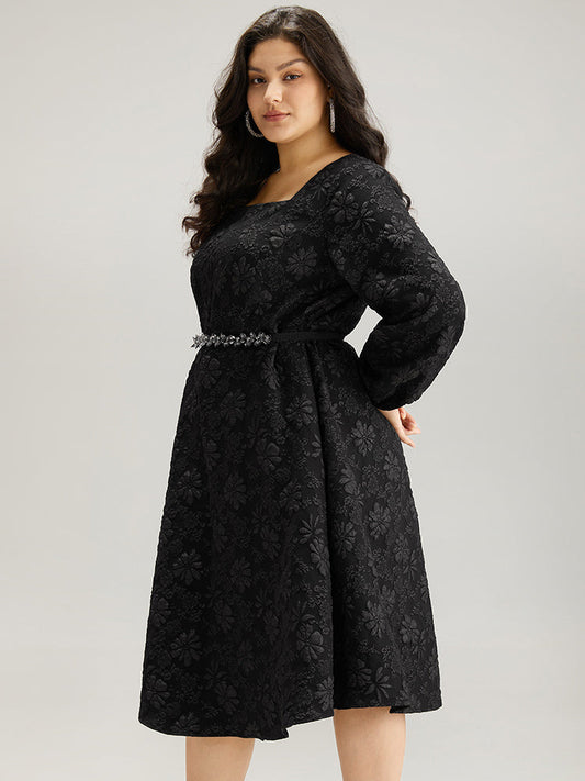 Floral Print Plisse Pocket Lantern Sleeve Dress