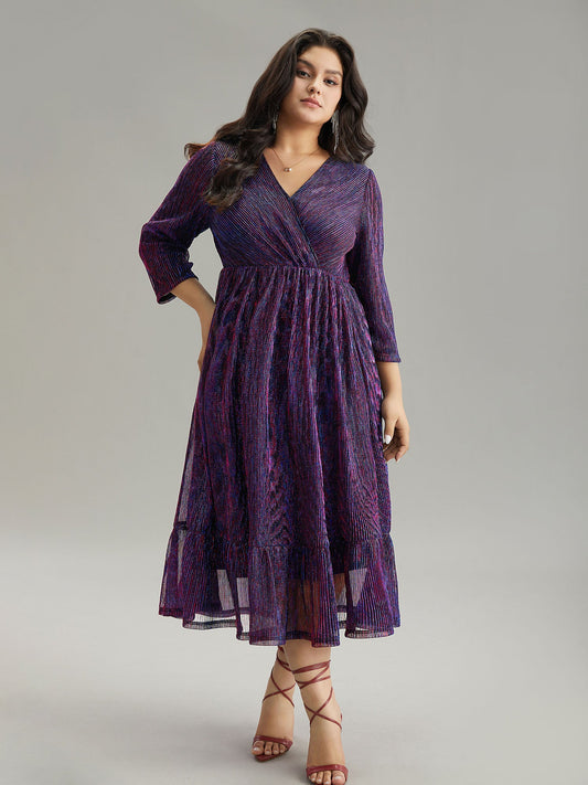 Sequin Overlap Collar Elastic Waist Knee Dress