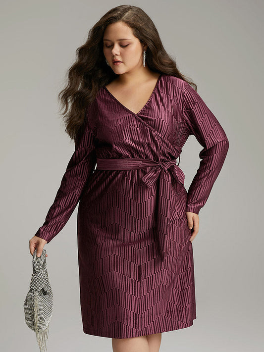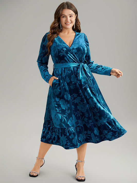 Velvet Silhouette Floral Print Belted Wrap Dress