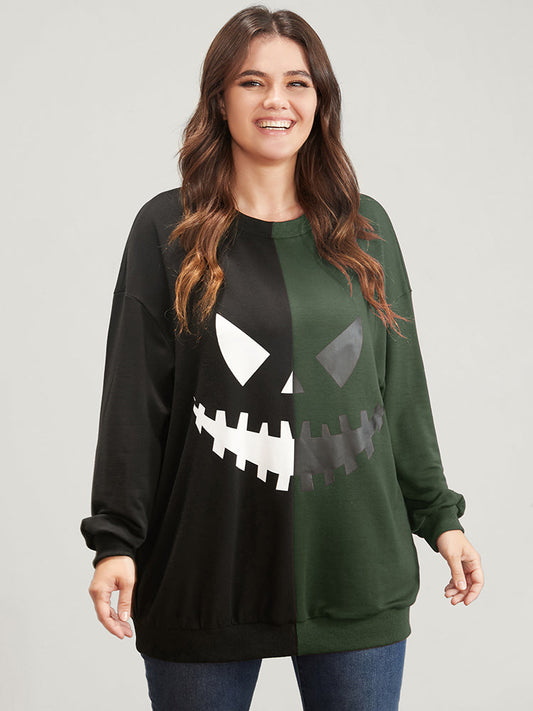 Halloween Sun Print Bell Sleeve Mesh Split Dress