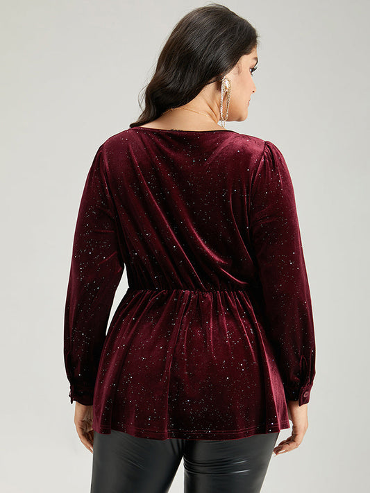 Glitter Sequin Velvet Twist Front V Neck Blouse