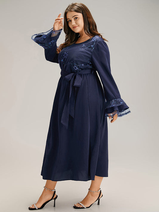 Star Sequin Mesh Layered Sleeve Dress