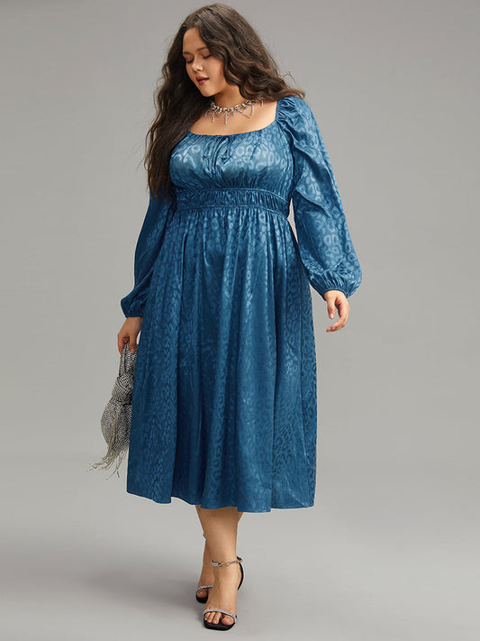 Leopard Print Square Neck Shirred Gathered Dress
