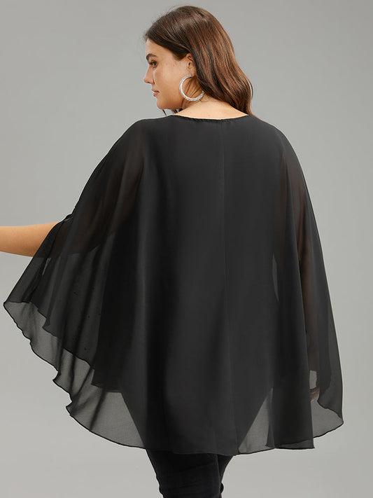Chiffon Rhinestone Split Dolman Sleeve Blouse