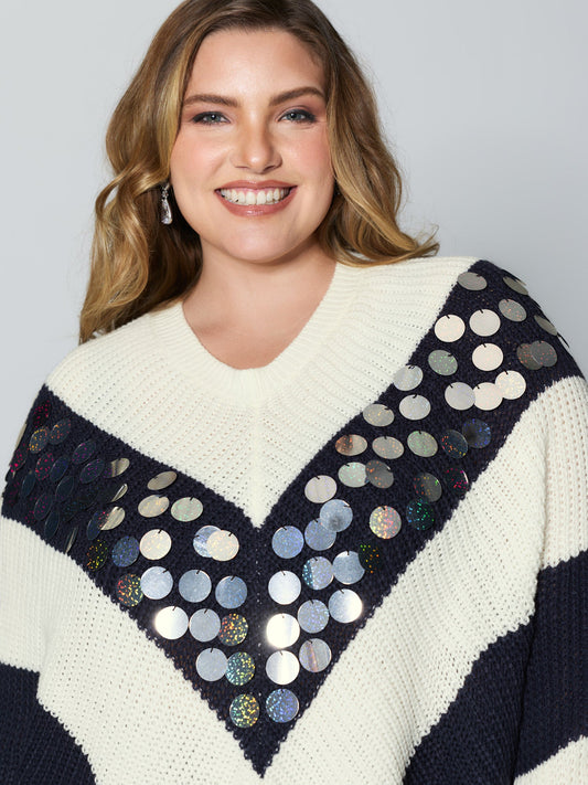 Textured Sequin Cloak Contrast Pullover