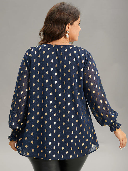 Glitter Polka Dot Textured Shirred Tiered Blouse