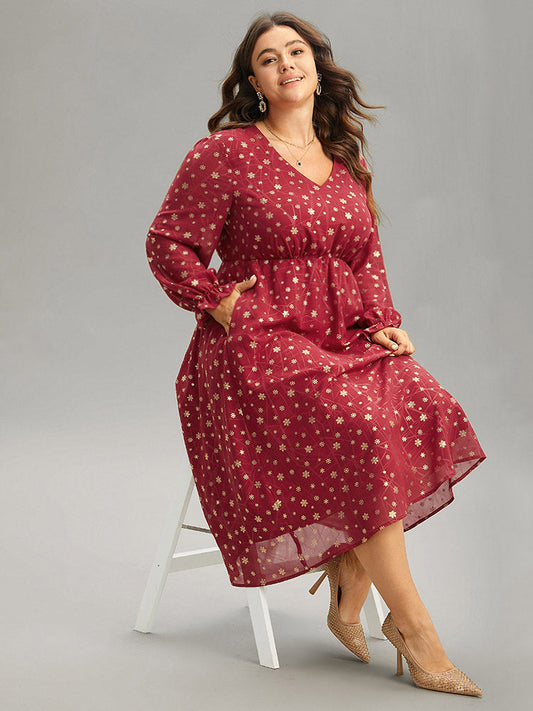 Snowflake Glitter Mesh Gathered Ruffles Dress
