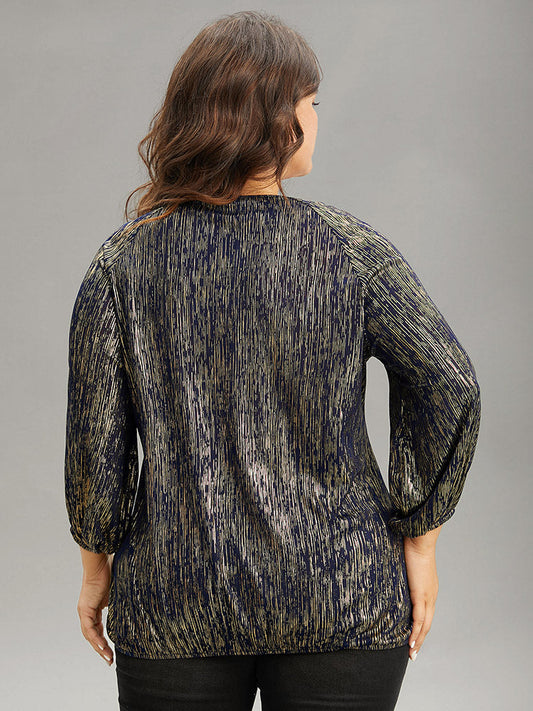 Glitter Galaxy Wrap Lantern Sleeve Blouse