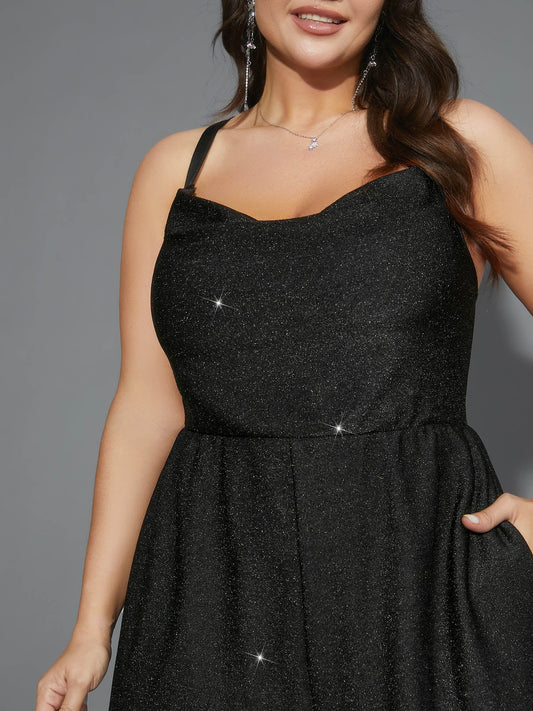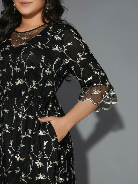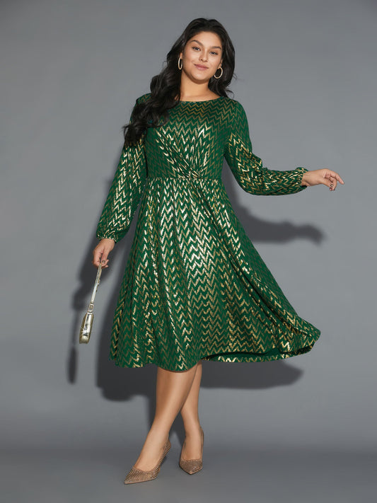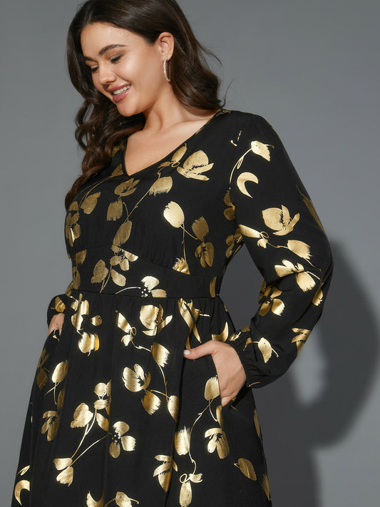 Glitter Silhouette Floral Print Elastic Waist Dress