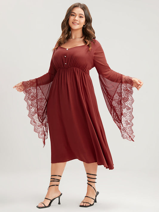 Halloween Solid Lace Bell Sleeve Asymmetrical Button Front Dress