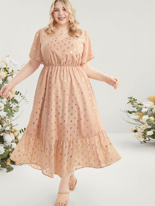 Polka Dot V Neck Pocket Ruffle Hem Maxi Dress